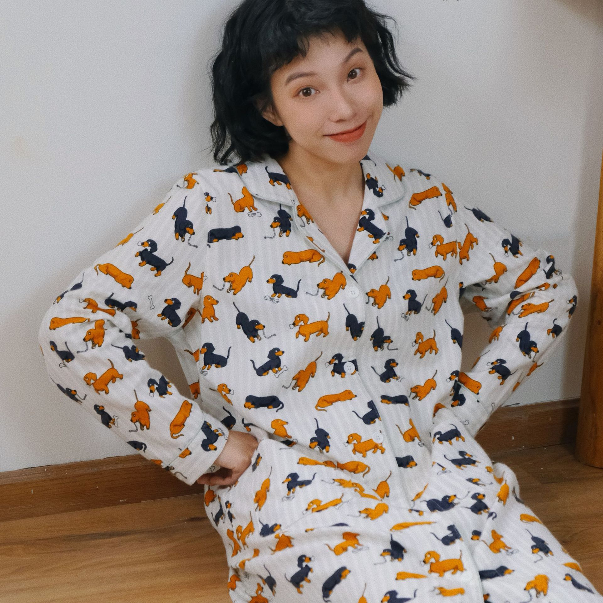 Female Summer Short Sleeved Long Pants Cute Little Dog Cartoon